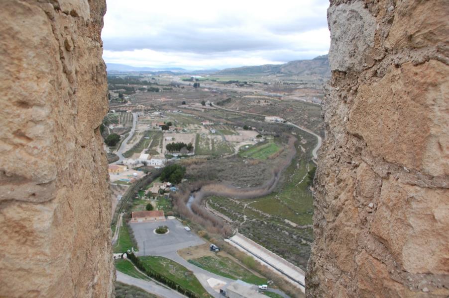 Wir parkten nach Ankunft in Sax unser Auto an der schattigen Nordwestseite der Burganlage und liefen hastig, weil frierend, den Weg zur Burg hoch, die auf einer steilen Klippe 524 m.ü.M. liegt. Dort oben liegt dem Betrachter Sax zu Füßen, hinter dem Dächermeer dehnt sich ein Großteil des Tals zwischen Elda und Villena aus, ein idealer Platz für Panoramafotos.