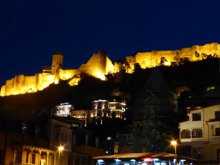 Die Burg von Tiflis bei Nacht