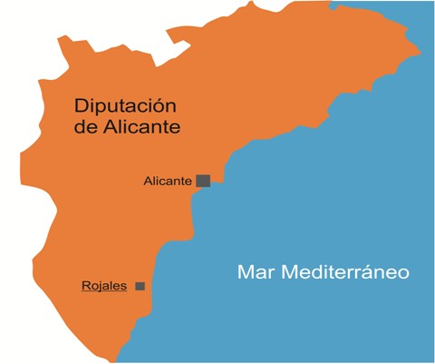 Rojales liegt im südlichen Teil der Provinz Alicante, der Vega Baja, und unweit der Strände der südlichen Costa Blanca, direkt am Lauf des Segura-Flusses.