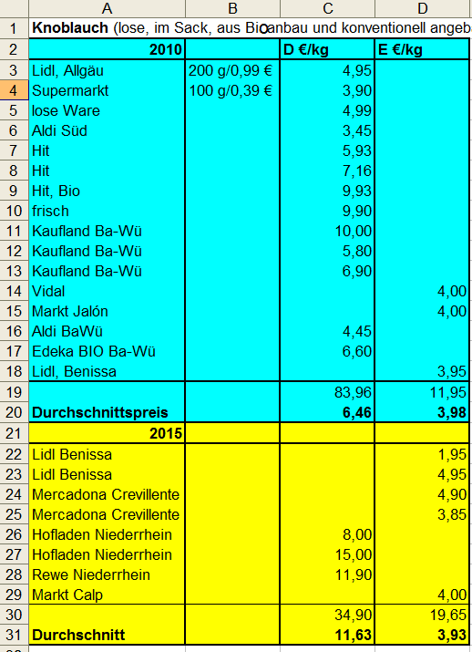 - Unsere recherchierten Preise spiegeln nicht die allgemeine Preisentwicklung wider
