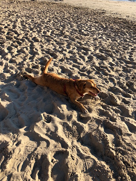 Erstmal Baden.... dann rennen und spielen..... im Sand chillen.... und zum Schluss mit Frauchen die Morgensonne genießen