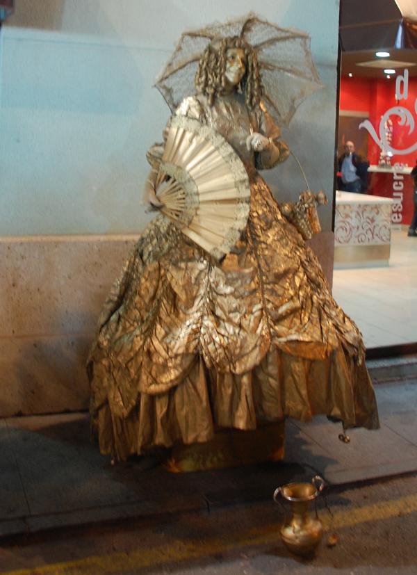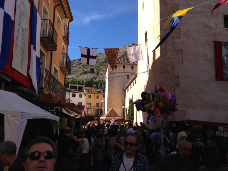 Selbst weit vor der Autobahnausfahrt Cocentaina stauten sich die Fahrzeuge, in der Stadt wurde jedes freie Plätzchen gnadenlos zugeparkt. Rücksichtnahme gab es nicht. Menschenmassen schoben sich durch die Gassen, Vater, Mutter, Kind und die armen Babys in ihren Kinderkarren auf Kniehöhe, die kaum etwas sehen konnten. Aber deren Mütter rammten den Vordermännern und -frauen unbarmherzig die Räder in die Hacken. Es war aber auch ein Traumwetter, das auch noch den letzten Zauderer von weither auf die