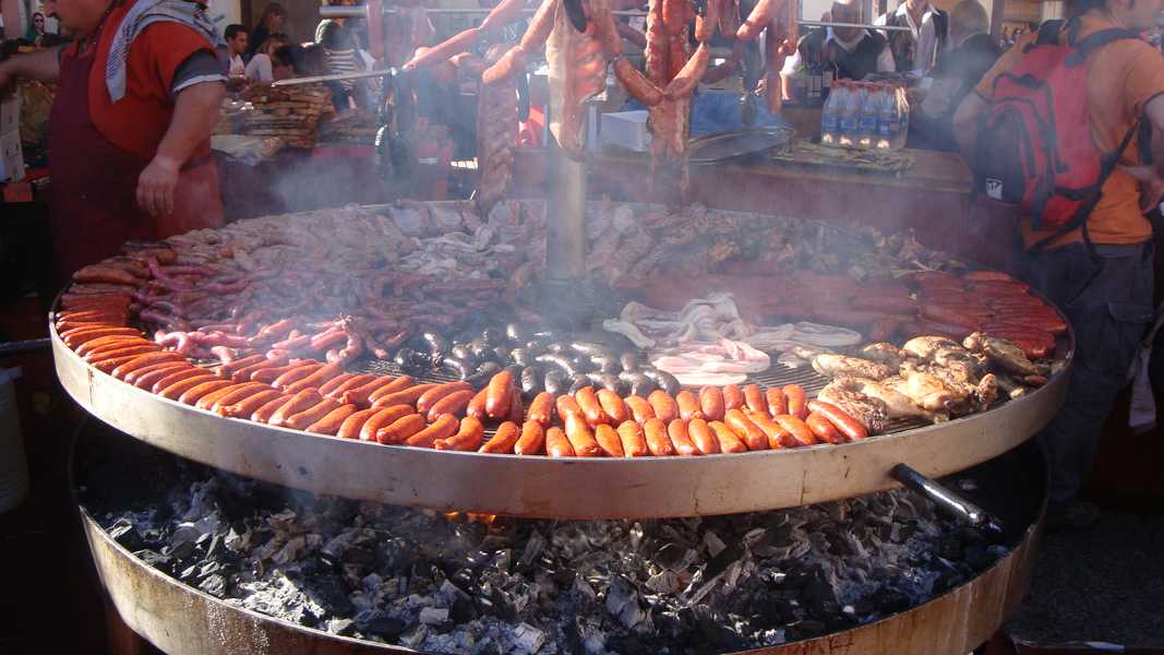 Auf jeden Fall saß das Geld bei den Spaniern (die gefühlte 99 Prozent der Besucher ausmachten) trotz Krise erstaunlich locker. Einer der geschmacklosen, minderwertigen Grillteller (parrillada) kostete 20 Euro, es wurde nur mit großen Scheinen bezahlt, ein Hunderter nach dem anderen ging über die Theke, doch auf ein Getränk musste man mehr als eine halbe Stunde warten. Mengen von Essensresten landeten im Müll (entweder wurde zu viel bestellt oder sogar die euphorischen Spanier bemerkten die miese Qualität?), ein eiserner Adler (Zierde auf einem Grillrost) stürzte einer Besucherin auf den Kopf, die blutüberströmt mit dem Krankenwagen abgeholt wurde. Leider gab der Akku meiner Kamera mitten im Geschehen den Geist auf, deshalb nur ein paar Eindrücke vom Anfang:
