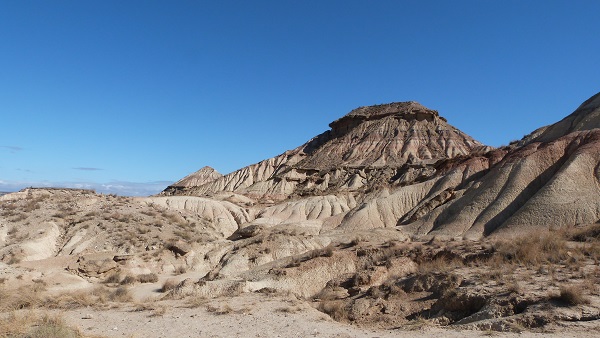 Nach einem ausgiebigen Frühstück fahren wir Richtung Norden und schwenken damit nach Navarra. Heute ist der totale Gegensatz angesagt: die 42 500 ha große Halbwüste Bardenas Reales. Der Zufahrtsweg bei Tudela zweigt an einer Tankstelle an der Ausfahrt Arguedas ab und führt zu einem Informationscenter, wo man sich einen Plan mit den ausgeschilderten Wegen holen kann (für Radfahrer und Wanderer gibt es extra Wege). Diese wunderschöne wilde Naturlandschaft wurde von der UNESCO zum Biosphärenreservat erklärt. Erosion des Lehm-, Kalk- und Sandboden hat eine Mondlandschaft voller Schluchten, Hochebenen und vereinzelte Hügel gezaubert. Bei Regen ist eine Durchfahrt mit normalem PKW verboten. An ausreichend Wasser sollte man denken (kein Kiosk in der Nähe