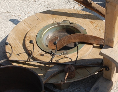 Die Öffnung in der Mitte ist für einen sogenannten "Brasero"*), das ist eine Schale, in die brennende (Holz-)Kohle gefüllt wird/wurde. Darüber kam ein bodenlanges Tischtuch und unter den Tisch dann die eigenen Beine.