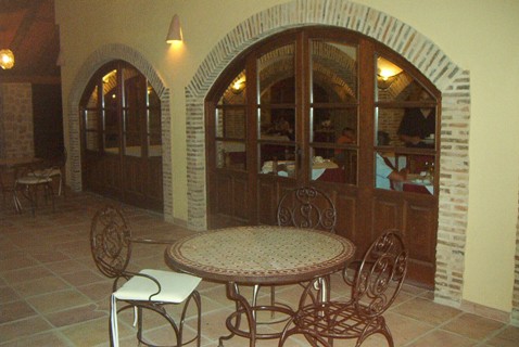 Das im rustikalen Stil gehaltene Hauptgebäude befindet sich am Ende der CV-721 auf einer Anhöhe. Im Hauptgebäude befindet sich das immer gut besuchte Restaurant, in dem traditionelle Gerichte angeboten werden. Auch ein gemütliches Lese- und Spielezimmer lädt zum Verweilen ein.