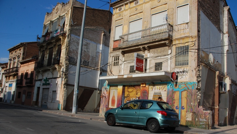 *) Die Stadt hat im Laufe der letzten Jahrzehnten mehr als fünfhundert Liegenschaften erworben, um den Bau der Av. Blasco Ibáñez voranzutreiben. 1.500 Wohnungen sollten abgerissen werden. 50 dieser städtischen Häuser waren im Mai 2017 illegal besetzt (mehr als 100 Personen), trotzdem wurden die nächtlichen Kontrollen reduziert. Die beunruhigten Nachbarn müssen hilflos zusehen. Los okupas ya controlan 50 casas del Ayuntamiento de Valencia en el Cabanyal vom 25.5.2017