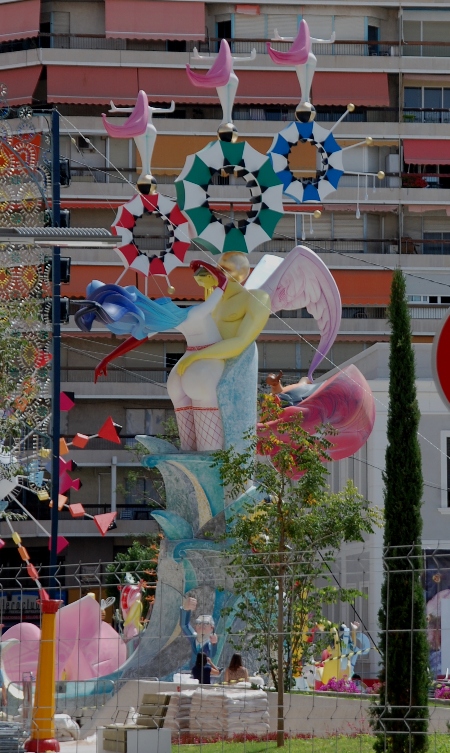 Als ich am Freitag in Alicante war, wurde überall fieberhaft am Aufbau der Pappmaschee-Figuren gearbeitet, Plätze abgesperrt, Tische und Stühle aufgestellt - eine ganze Stadt in Feierlaune!