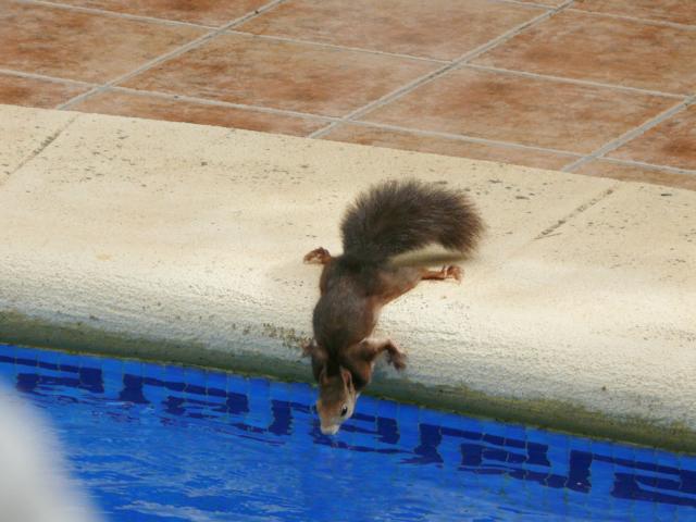 Mir gefällt die Katze, die sich versteckt, am besten. Und dass Eichhörnchen aus dem Pool trinken war mir auch neu.