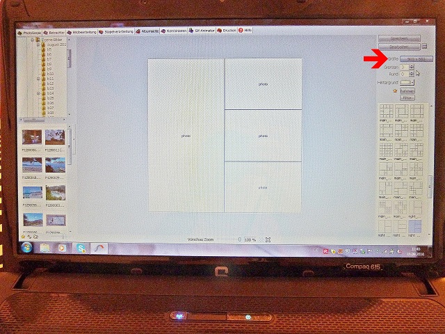 Auf Albumseiten klicken, um eine Collage zu erstellen. Nun erscheint dieses Bild,