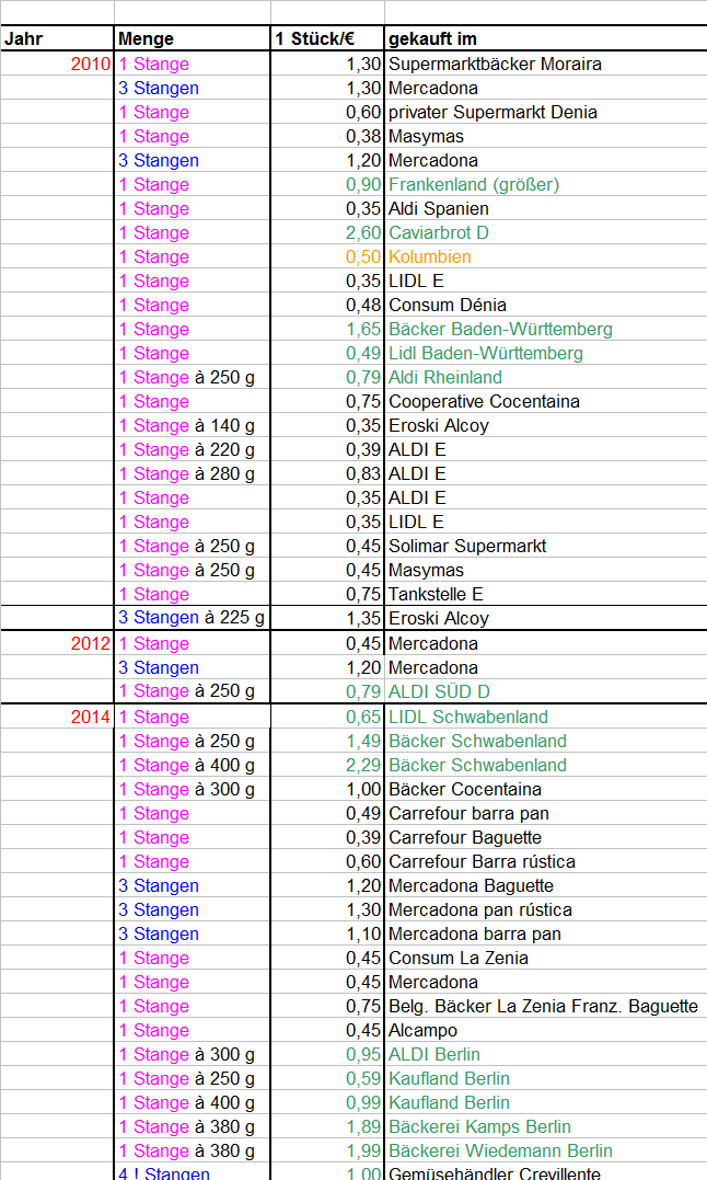 Ausnahme das Brot für 0,25 € in Crevillente - ausgerechnet bei einem Gemüsehändler!!!!