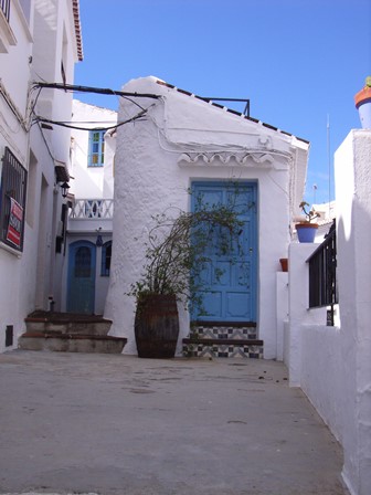 Das "Weiße Dorf" Frigiliana liegt rund 330 m hoch an den Hängen der Sierra de Almijara etwa 6 km oberhalb von Nerja. Die Anlage des alten Ortskerns mit winkligen Gässchen geht noch auf die maurische Zeit zurück. Frigiliana ist ein sehr gepflegter, schöner Ort mit weiß verputzten Häusern und viel Blumenschmuck.