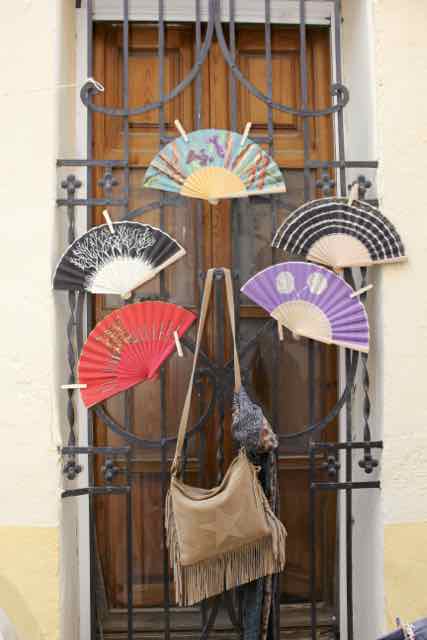 Die Marktfrauen haben sich einen schönen Nachmittag gemacht und die Fächer an die Wand gehangen.