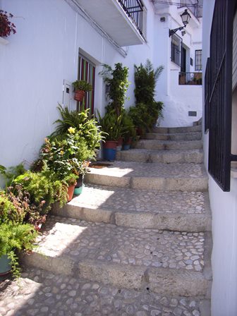 Das "Weiße Dorf" Frigiliana liegt rund 330 m hoch an den Hängen der Sierra de Almijara etwa 6 km oberhalb von Nerja. Die Anlage des alten Ortskerns mit winkligen Gässchen geht noch auf die maurische Zeit zurück. Frigiliana ist ein sehr gepflegter, schöner Ort mit weiß verputzten Häusern und viel Blumenschmuck.