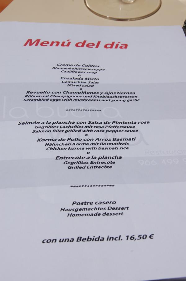 Wir haben das Tagesmenü genommen, Preis 16.50 € inkl. einem Getränk.