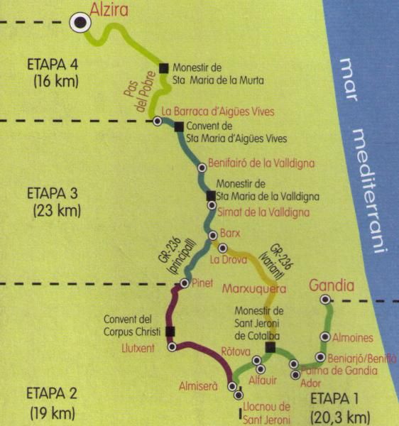 da ist mir doch beim durchstöbern meiner vielen Digigcambestände noch was passendes für die Gegend rund um Rotova untergekommen, will ich euch fuer eventuelle Tourenplanungen nicht unterschlagen. Habe ja schon in verschiedenen Berichten einige "Schmankerln" entlang der CV60 von Gandia nach Xativa beschrieben, wie ja auch auf den Wanderwegweisern erkenntlich kann man sich in der ganzen Gegend schoen von einem Ziel zum anderen bewegen:
