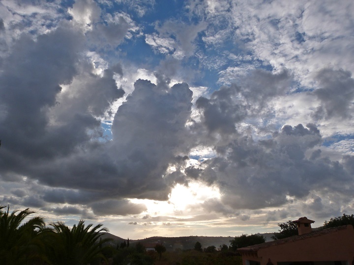Auch ich wurde gegen 5 Uhr heute morgen durch Donner und Gepiätschere aufgeweckt. Jetzt donnert es schon wieder und unten in Moraira geht ein Riesenschauer `runter.
