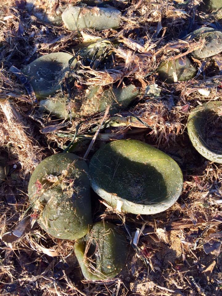 Beim gestrigen Strandspaziergang sind uns zwischen den vielen Neptunbällen diese grünen "Gebilde" aufgefallen, die teilweise in großen Mengen angespült worden waren: