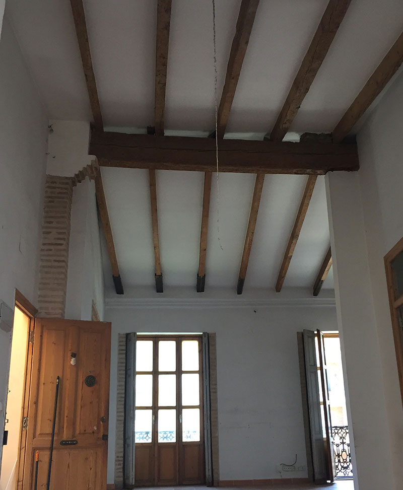 das war auch meine Idee mit der Zwischendecke. Leider funktioniert das bei mir nicht so richtig da ich auf keinen Fall meine wunderschöne Decke abhängen möchte (siehe Foto). Ansonsten wäre das mein ganz klarer Favorit für eine Klimaanlage! :-)