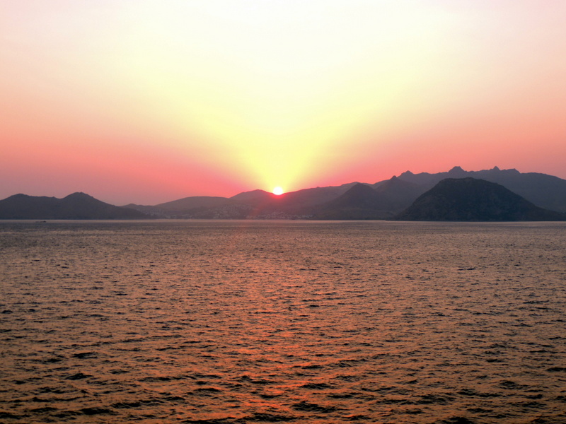 Verabschiedet hat uns Mykonos mit einem wunderschönen Sonnenuntergang.