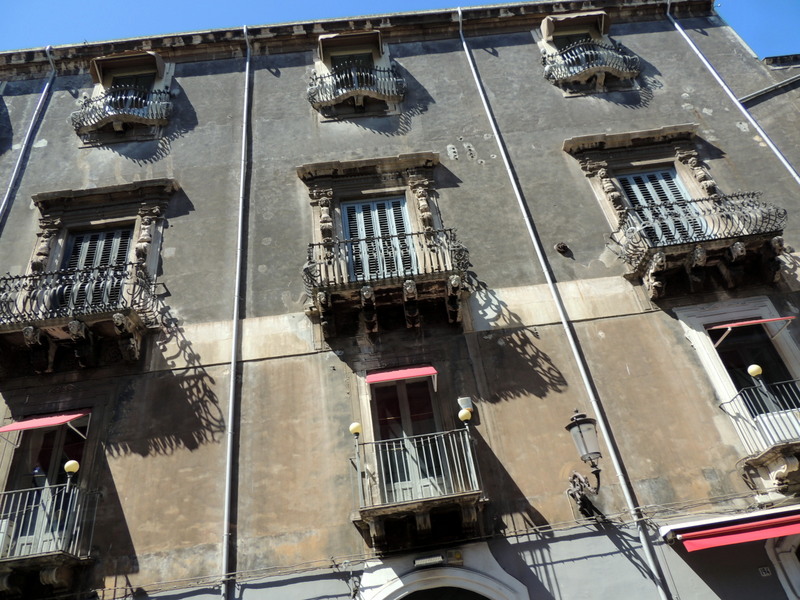 Zurück in der Stadt Catania ging es nicht direkt in den Hafen zum Schiff, sondern einmal quer durch die Altstadt, die seit 2002 zusammen mit acht anderen barocken Städten im Val di Noto auf der Liste des UNESCO-Welterbes steht. Nach der fast völligen Zerstörung durch den Vulkanausbruch 1669 und dem Erdbeben 1693 wurde Catania vorwiegend im Stil des römischen Barock wieder aufgebaut. Wohin man auch schaut, fallen einem die vielen Bauwerke und Denkmäler dieser Epoche ins Auge. Wohngebäude, Kathedralen, Paläste ... man weiß gar nicht, was man sozusagen im Vorbeifahren zuerst fotografieren soll. Deshalb nachfolgend einige der aufs Bild gebannten Gebäude und Sehenswürdigkeiten, teilweise sehr gut erhalten und restauriert und manches Mal auch dem Verfall preisgegeben.