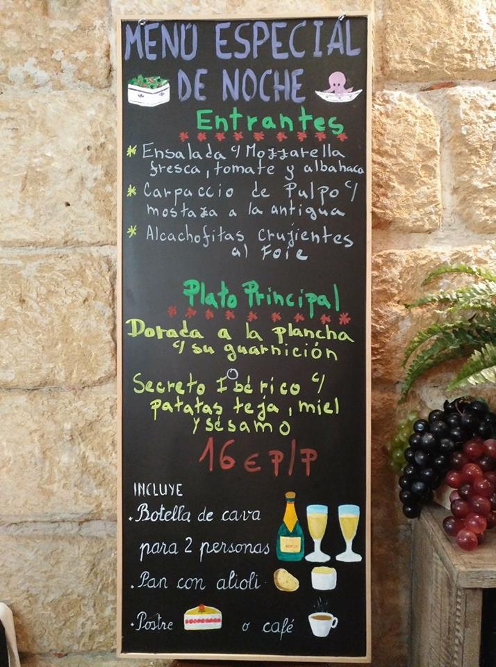 Im Preis von 16 Euro ist auch eine Flasche Cava für je 2 Personen inklusive. Die Speisen waren sehr appetitlich auf ansprechendem Geschirr angerichtet und wir haben sehr gut und lecker gegessen.