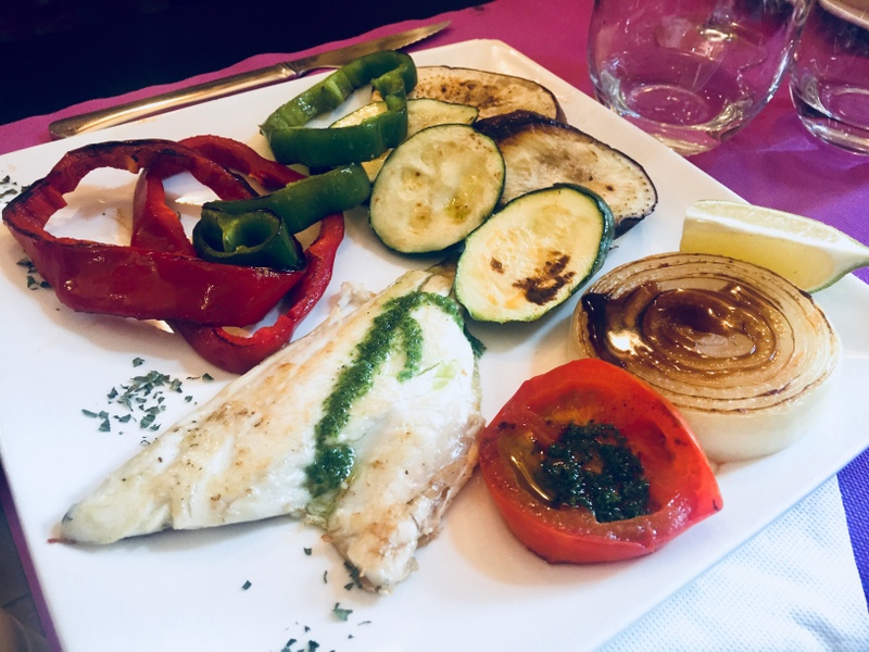 Dorada a la plancha al estilo Cova<br />con su guarnición