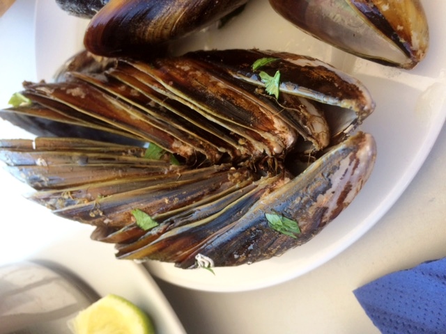 Miesmuschelschalen, als Platzgründen fein säuberlich ineinandergeschoben.