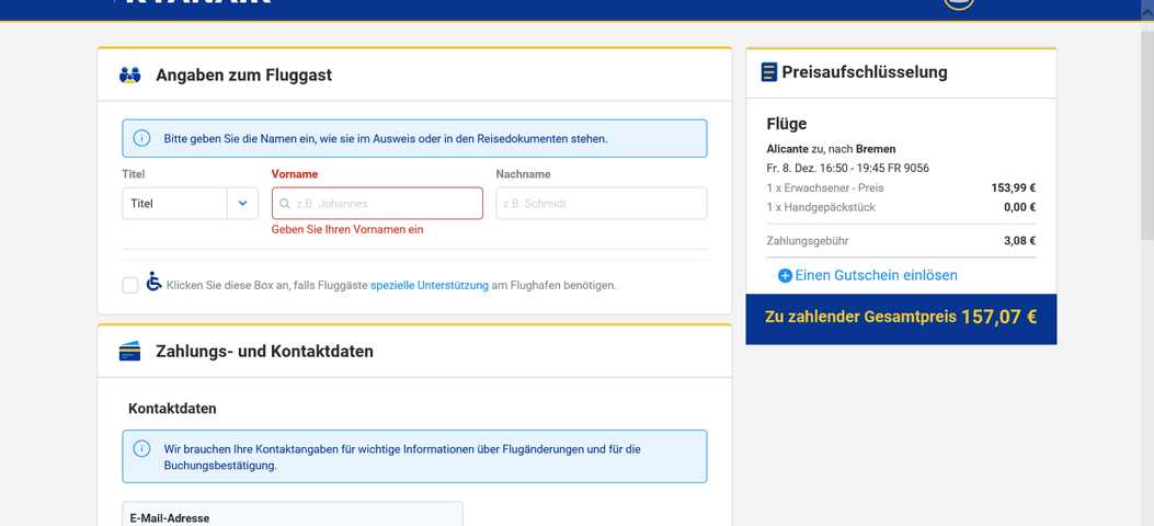 Wo ich aber von Ryanair.de auf .es gewechselt bin, war es ohne Probleme möglich, nur dass der ganze Buchungsablauf in Spanisch war.