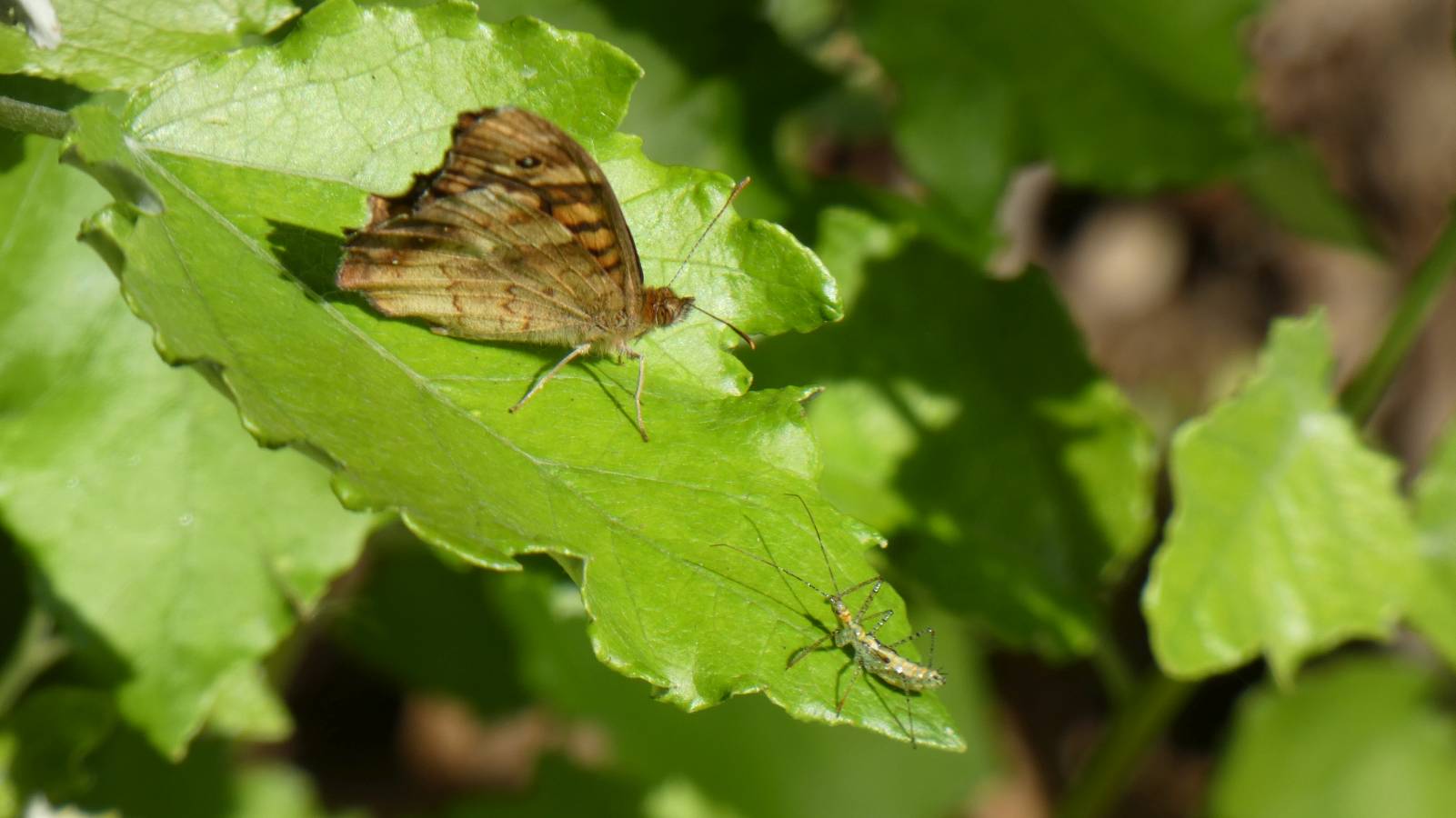 Ich wollte eigentlich den Schmetterling fotografieren, aber der kleine Geselle hat sich mit auf's Bild geschmuggelt