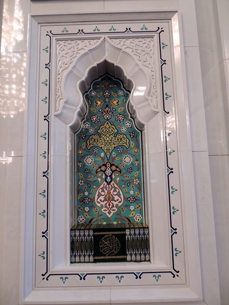 Wir fanden schon den Gebetsraum der Frauen prächtig, aber der der Männer war - im wahrsten Sinne des Wortes - herrlich. Unser Besuch in der Moschee schloss mit einer Teestunde, bei der uns eine Omani Fragen zur Moschee und dem religiösen Leben beantwortete, aber auch zu allerlei weltlichen Themen um das Leben im Oman Stellung bezog.