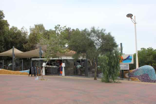 Der Hauptweg mit den Pinienbaeumen erinnert entfernt an Savannah Hier ein Ausblick auf den Park von einer gezaehmten Wanderdüne. Tote bzw. sterbende Agaven sieht man überall. Der Spielplatz hat die besten Jahre seit Jahrzehnten hinter sich. Wasser kommt hier auch nicht mehr. Hier wird fuer die Aufforstung gesorgt. Wobei es sicherlich einige Zeit braucht, bis die kahlen Stellen gefüllt sind. Einen brauchbaren Weihnachtsbaum haben wir gefunden. Weiss jemand, wie dieser Strauch heisst? Der Duft erinnert an Honig.