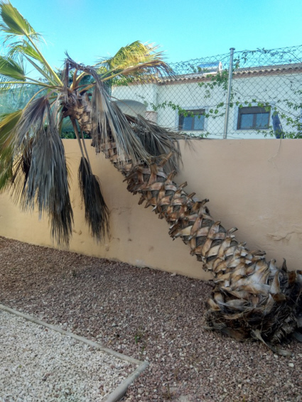 Diese befallene Palme musste ich letztes Jahr von einem Gärtner entfernen lassen. Hat mich 250 Euronen gekostet, erster Preis war 350. Im Moment ist von der Palme nur noch der Stumpf übrig. Aber die Aussicht ist besser geworden, sehr zur Freude unserer Katzen. Haben von der Fensterbank im Obergeschoss eine tolle Aussicht auf jagende Artgenossen.