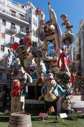 Alles in Allem gab es über 800 Fallas zu bewundern, wir haben nicht alle geschafft - aber einige. Daher jetzt der nächste Schub, immer in dem Bewusstsein, dass am Dienstag in der Nacht alles verbrannt wurde. Nur zwei kleine Beifiguren, die Ninots, haben nach einer vorher stattgefunden Wahl durch Besucher einer diesbezüglichen Ausstellung überlebt und stehen jetzt im Fallas Museum...
