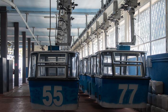 Danach die plötzliche Eingebung: wir nehmen die Gondel und fliegen über den Fluss für schöne Fotos von der anderen Seite. Hin-und Rückfahrt bezahlt und los gings. Naja, zumindest hin, denn unterwegs frischte der Wind dermaßen auf, dass nach unserer Ankunft die Seilbahn geschlossen wurde. Und jetzt? Kein Problem, man stellte allen Leuten, die ein Ticket hatten, ein Taxi. Ok, auch das hat gedauert, aber nach zwei Stunden hatten wir allerhand erlebt und einige schöne Fotos im Kasten