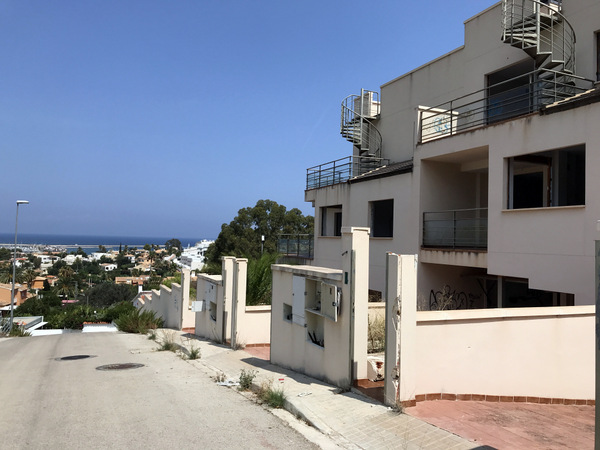 La Siesta ist in Dénia ja als Geisterurbanisation hinlänglich bekannt, aber gestern habe ich zufälligerweise ein weiteres Projekt in der Stadt entdeckt. Im Viertel Santa Lucia, unterhalb des Montgos, befindet sich in der Calle Rosa ein nicht beendetes namenloses Bauvorhaben. Geplant waren mit Genehmigung aus 2005 laut Bauschild 52 Einfamilienhäuser, von denen etwa die Hälfte errichtet wurde bevor der Bauträger 2010 Insolvenz anmeldete.