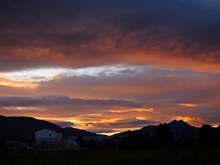 Vor zwei Wochen, als wir unsere Oliven in die Mühle gebracht haben, gab es diesen wunderschönen Sonnenuntergang in Relleu mit einer ganz besonderen Stimmung.