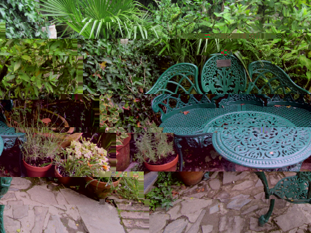 Bei einem Besuch in einem Mustergarten habe ich diese Stühle gesehen. Schön auch der Spruch an der Mauer.