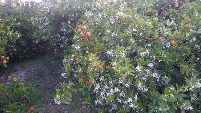 Jetzt, im Frühjahr, sind die Zitronen- und Orangenbäume am schönsten anzusehen. Während teilweise die Früchte des Vorjahres noch am Baum hängen, sind sie schon in voller Blüte. Herrlich dieser Duft! >:d<