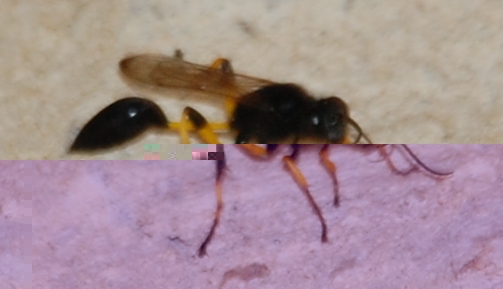 Seit Tagen kann ich wieder eine Sceliphron curvatum bei dem Bau ihrer Lehmkokons beobachten. Die Orientalische oder Indische Töpferwespe (andere Namen sind: Mauer- oder Mörtelwespe) stammt - wie der Name schon sagt - aus Indien, aber auch in Nepal, Pakistan, Kasachstan, Tadschikistan ist sie zu Hause. Sie wurde nach Europa eingeschleppt und tauchte 1979 zum ersten Mal in der Südsteiermark auf und verbreitet sich seitdem kontinuierlich - inzwischen auch in deutschen Städten. Die Töpferwespe ist ungefährlich, ihr Stachel ist für die menschliche Haut viel zu schwach. Sie lebt solitär und misst zwischen 13 und 20 mm Körperlänge.
