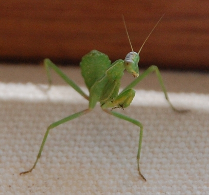 Eine kleine, grüne Gottesanbeterin,