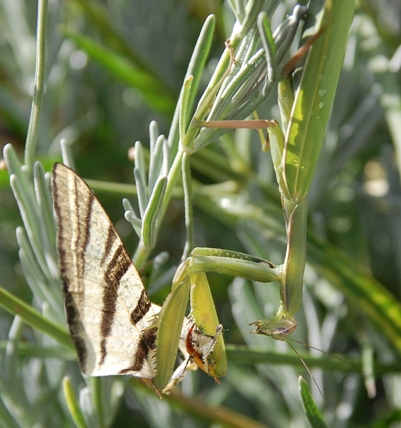 Ich glaube, man sieht die Gottesanbeterinnen einfach selten "im Flug". Wenn sie einem trotz ihrer Tarnung auffallen, sitzen sie regungslos und majestätisch verharrend auf Beute lauernd versteckt - kommt mir auf jeden Fall so vor.