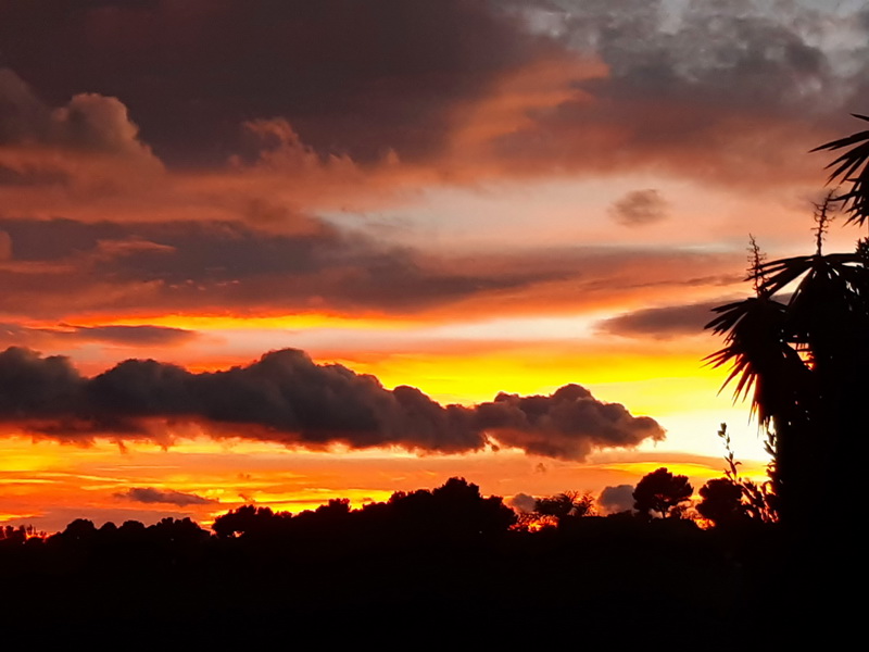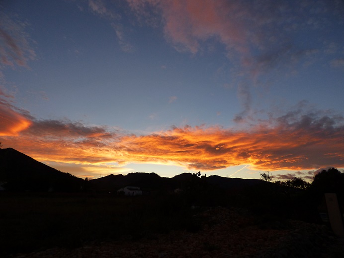 Heute hatten wir ja an der Costa Nord (und wohl nicht nur da) ein ungewöhnliches Klima. Wir haben mittags jemanden vom Airport VLC abgeholt. Dort hat mein Display kurzzeitig 29° C angezeigt ! Da war schon einiges zu erwarten, was den Himmel am Abend anbelangt. Hier das Ergebnis: