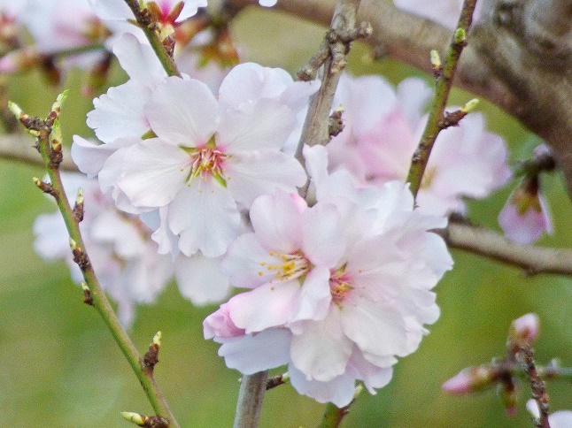 Während es im Jalontal schon Blüten regnet, haben sich weiter westlich die Knospen erst geöffnet oder knöspeln noch vor sich hin… Leider gibt es auch bei uns im Umkreis zahlreiche Mandelplantagen, die dem Erdboden gleich gemacht wurden…