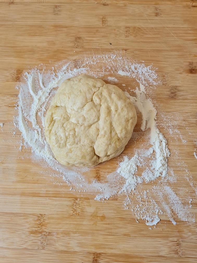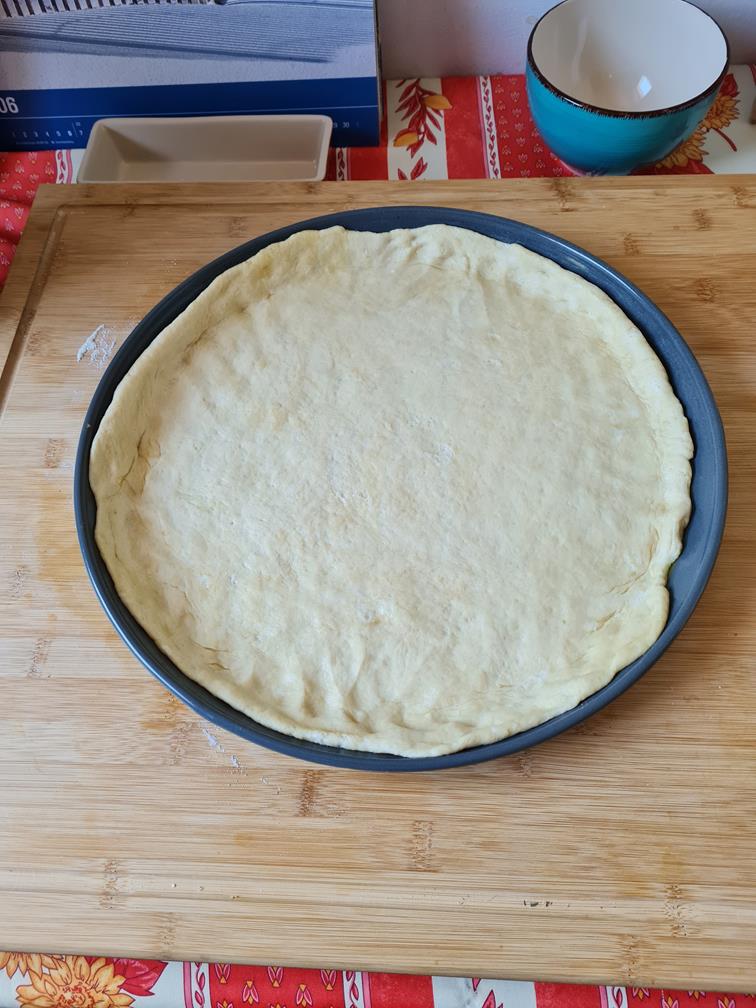 Ich nehme für den Teig meine Knetmaschine. Erst das Mehl in die Schüssel und dann Salz. Die Hefe verrühre ich vorher in dem lauwarmen Wasser, dass sie sich auflöst. Dieses Hefewasser gieße ich in die Schüssel und stelle das Gerät auf niedrigste Rührstufe. Das Olivenöl gebe ich beim Rührvorgang hinzu. Nach ca. 8 Minuten gebe ich den Teig in eine Schüssel an einen warmen Ort und decke ihn für eine Stunde zu. Er verdoppelt dann normalerweise sein Volumen.