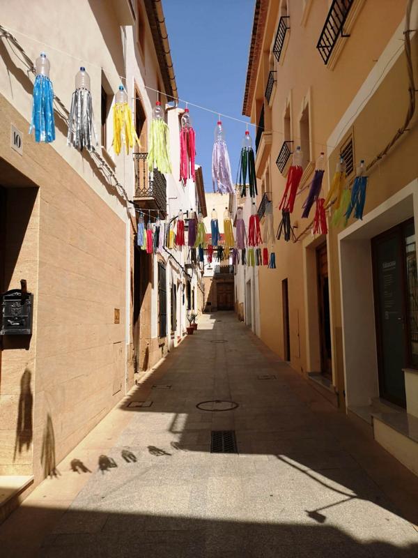 Diese Blöße wollte man sich in Xàbia wohl nicht geben und fand eine Alternative, die genauso schön bunt aussieht, jedoch deutlich haltbarer und so gut wie kostenlos ist. Schaut mal, vielleicht wäre das auch eine Idee für die nächste Gartenparty? :)