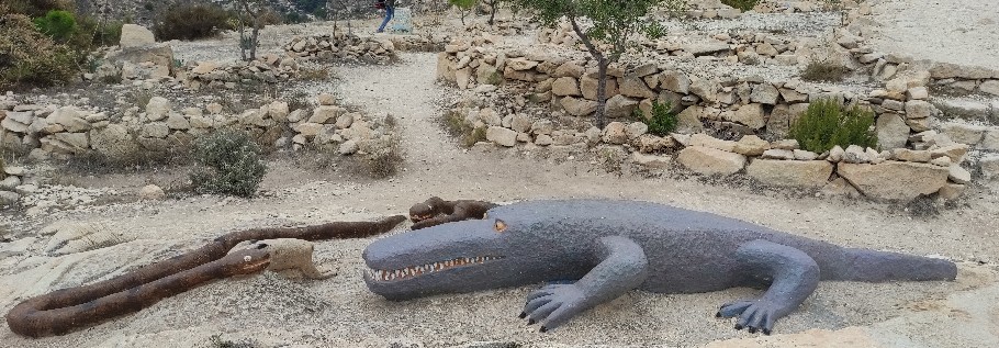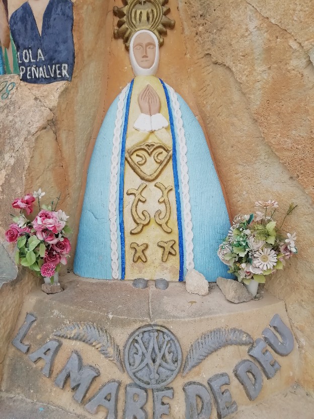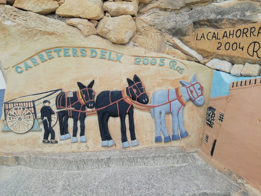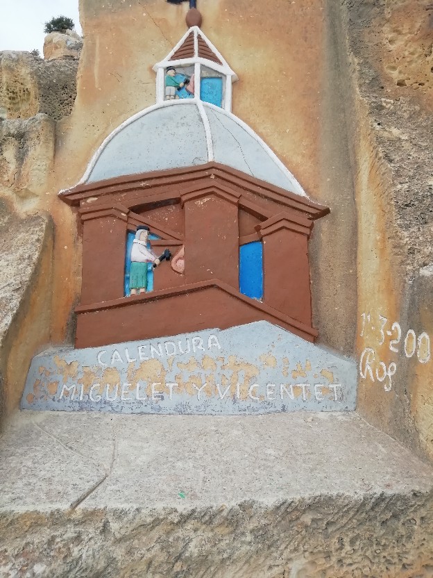 " El Cau" ist eine Gruppe von Skulpturen mit Motiven aus Elche, die in leuchtenden Farben direkt in den Sandsteinfelsen gemeißelt wurden. Der Schöpfer dieser Pracht war Mariano Ros, der 2017 im Alter von 91 Jahren verstarb. Gemeinsam mit einigen Kollegen schuf er seine ersten Arbeiten im Castellar-Gebirge aber wegen der dortigen Schutzbedingungen ( Überreste der ersten islamischen Siedlung befinden sich dort) wurden die Skulpturen an den heutigen Standort verlegt. Bis 2008 setzten Ros und seine Kollegen die Arbeiten fort, bis sie gezwungen wurden, die Arbeiten wieder einzustellen, weil sie auf öffentlichem Grund stattfanden.