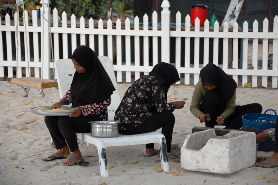 Als im November die Comunidad Valenciana den grünen Bereich der 7-Tage-Inzidenz verließ und Deutschland eine coronabedingte Reisewarnung für Spanien aussprach, weil auch da die Zahlen wieder in die Höhe schnellten, und nicht zuletzt wegen des usseligen (umgangsprachlich: nasskalt) Wetters, entschlossen wir uns, unsere schon im Sommer gebuchte Reise auf die Malediven, als man noch an das Abflachen der Pandemie glaubte, anzutreten. Wir waren doppelt geimpft und durften unter zusätzlicher Vorlage eines PCR-Tests einreisen. Dieser Test, den wir wegen des geringen Zeitfensters nur am Flughafen machen konnten, zehrte bis Zustellung des Testergebnisses (nachts um drei) an unseren Nerven. Grund: Wir hatten eine Autoreise durch Frankreich hinter uns, hatten danach Kontakt zu unseren ungeimpften Enkeln in Deutschland, und fragten uns, ob wir uns vielleicht doch irgendwo infiziert hatten, ohne Symptome zu zeigen. Wir konnten von unserer Buchung wegen Covid-19 noch bis zum letzten Tag zurücktreten, obwohl wir keine Pauschalreise gebucht hatten, aber wegen des PCR-Tests und der Abflugzeit am nächsten Tag hätten wir nicht mehr rechtzeitig stornieren können. Im schlimmsten Fall hätten wir den Linienflug verschieben müssen, aber den Preis für drei Wochen Inselaufenthalt hätten wir zahlen müssen. Das Risiko konnten wir eingehen, denn der Aufenthalt auf den local islands ist unvergleichlich günstiger als auf den reinen Hotelinseln, wo den Touristen kulinarisch alles geboten wird, was sie von Zuhause kennen, denn für sie wird fast alles aus der Ferne importiert.