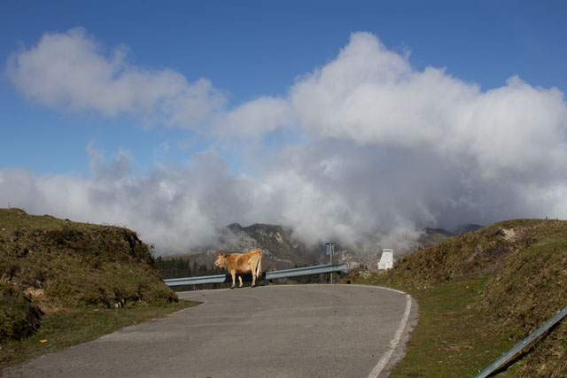 Bei Soto de Cangas wechseln wir auf die AS-262, wir haben noch viel zu wenig Höhenmeter gemacht. Covadonga lassen wir noch links liegen und folgen der Strasse weiter bergan, es ist Winter, die Strasse ist offen. Im Sommer muss leider der Bus benutzt werden. Der CO-4 folgend, erreichen wir auf rund 1100 m das nächste Ziel, Lago Enol.