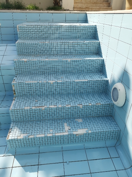 Ebenso haben wir, da wir zwei ca. 2m x 2m Mosaik geflieste Podeste/Duschtassen an der Pooltreppe entfernt haben,